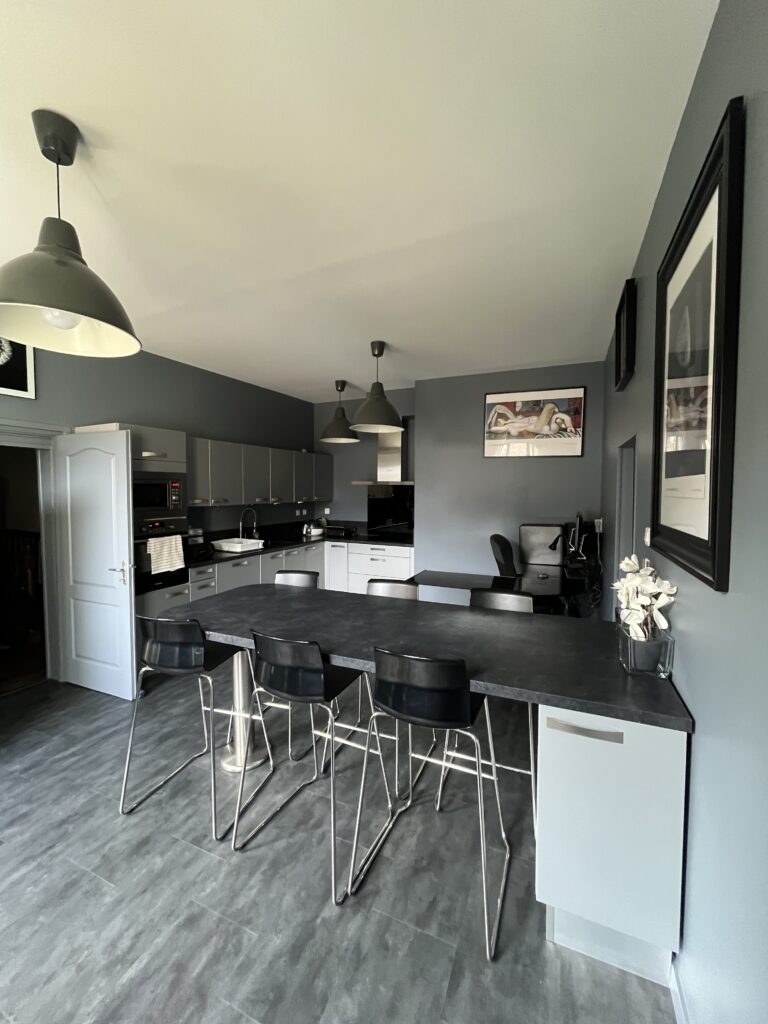 Equipée d’un four, d’un micro onde, d’un lave vaisselle, machine à café, d’un cuiseur sans huile et plaque de cuisson électrique, une bouilloire, un auto-cuiseur avec la vaisselle adaptée, vous pourrez cuisiner en toute tranquillité.